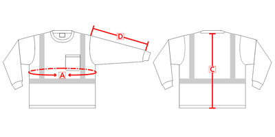 201-CT High Visibility Shirt - Size Chart| | A | C | D | |