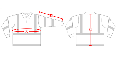 316 High Visibility Long Sleeve Polo Shirt - Size Chart| | A | C | D | |